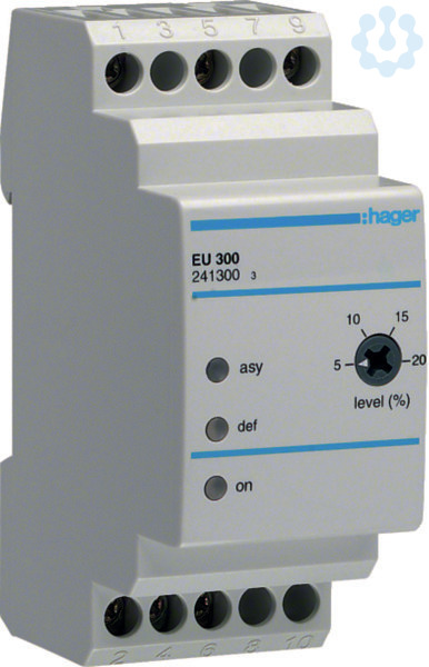 Kontrollrelais, Phasen, 3 ph., Asymetrie.Kontrollrelais zur Phasenkontrolle und Asymmetrieüberwachung 3-phasig Asymmetriewert über Drehregler einstellbar. Phasenfolgeüberwachung Phasenverlust und Unterspannungserkennung (0,7 x Un)