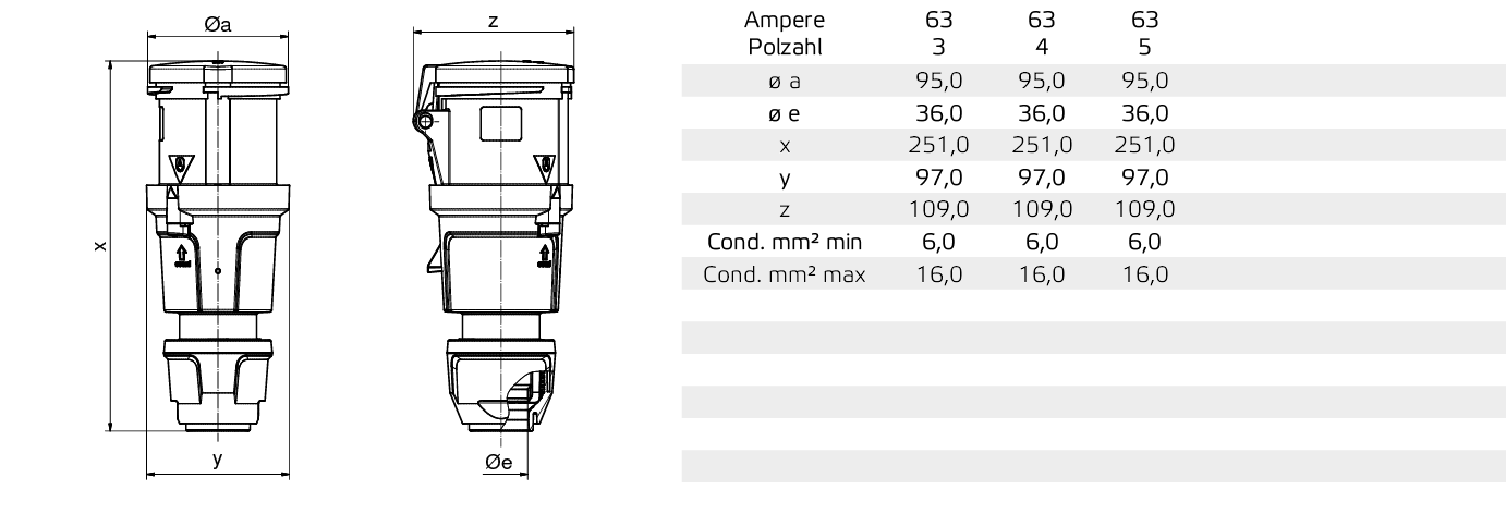 | Spannung nach EN 60309-2 | 400 V (50+60 Hz) rot |