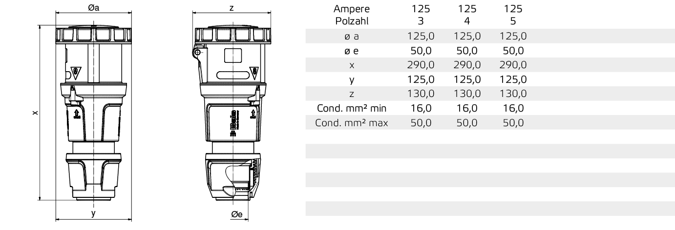 | Spannung nach EN 60309-2 | 400 V (50+60 Hz) rot |