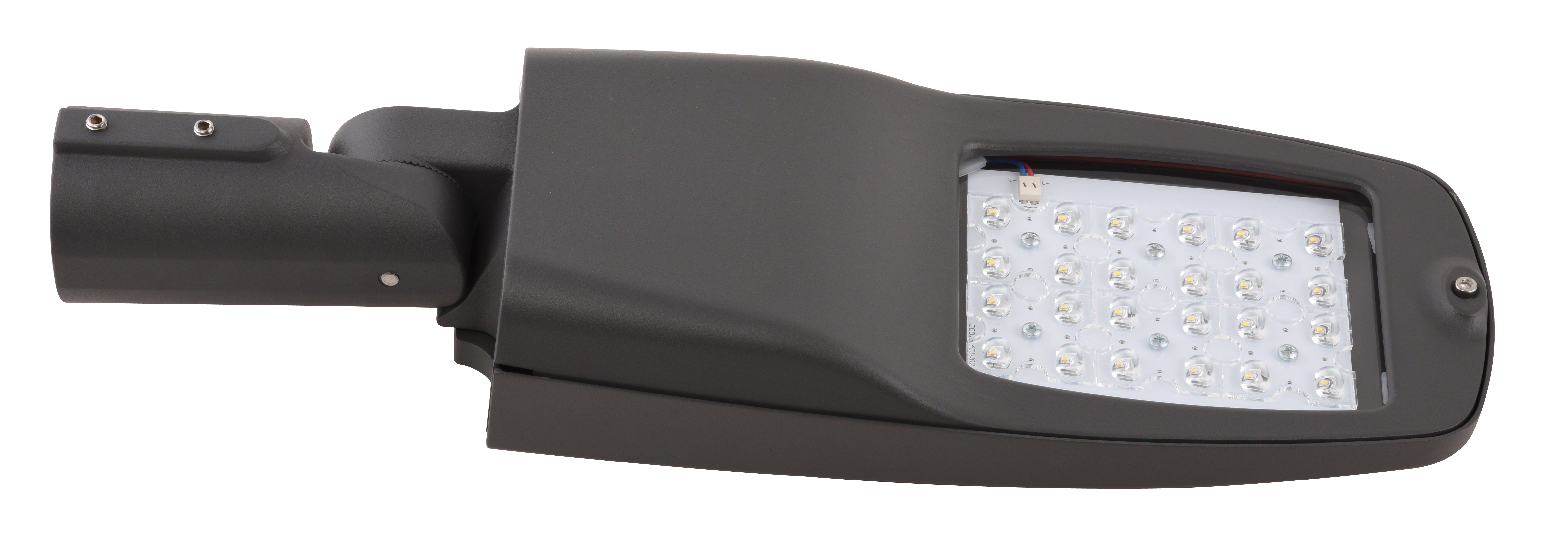 LED-Straßenleuchte mit optimierter Lichtlenkung ohne Lichtemmissionen für die normgerechte Straßen- und Wegebeleuchtung, aktiver Übertemperaturschutz, Gehäuse aus reinem Aluminiumdruckguss, werkzeuglos zu öffnender Anschlussraum, hohe Effizienz und hervorragendes Preis-/ Leistungs-Verhältnis, dimmbar per DALI, Leistungsreduzierung über zweite Phase, Nachtabsenkung, mit Osram Treibertechnologie, Überspannungsschutz bis 10 kV, stufenlos schwenkbare Aufnahme geeignet für Mastan- und Mastaufsatz für Zopfmaß 76 mm.