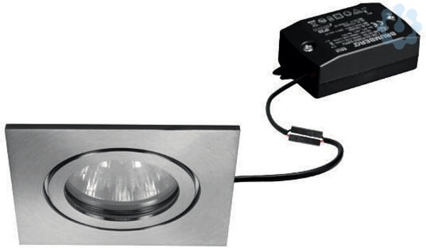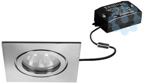LED-Einbaudownlightset V4A IP54, schaltbar, edelstahl, quadratisch. Ausgeführt in kompakter Bauform für werkzeuglose Schnellmontage zum Deckeneinbau. Set inkl. Konverter für 230 V-Netzspannung, schaltbar, Maße Konverter: L 68 x B 35 x H 21 mm Ausführung: ohne Fassung, Montageart: Einbaumontage, Montageort: Deckenmontage, Material: Edelstahl / Aluminium / Glas, Schutzart raumseitig: nach DIN EN 60529: IP54*, Schutzklasse: (EN 61140) II, Spannung: 230V AC 50Hz, Leistung: 6 W, Anzahl der Leuchtmittel / Fassungen: 1 Stück, Lichtstrom: 680 lm, Farbtemperatur: 3.000 K, Lichtfarbe: weiß, Abstrahlwinkel: 38°, Verstellbarkeit: nicht verstellbar, Mit Betriebsgerät: Ja, Art der Dimmung: schaltbar.