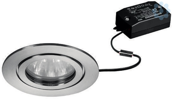 LED-Einbaudownlightset V4A IP54, schaltbar, edelstahl, rund. Ausgeführt in kompakter Bauform für werkzeuglose Schnellmontage zum Deckeneinbau. Set inkl. Konverter für 230 V-Netzspannung, schaltbar, Maße Konverter: L 68 x B 35 x H 21 mm Ausführung: ohne Fassung, Montageart: Einbaumontage, Montageort: Deckenmontage, Material: Edelstahl / Aluminium / Glas, Schutzart raumseitig: nach DIN EN 60529: IP54*, Schutzklasse: (EN 61140) II, Spannung: 230V AC 50Hz, Leistung: 6 W, Anzahl der Leuchtmittel / Fassungen: 1 Stück, Lichtstrom: 680 lm, Farbtemperatur: 3.000 K, Lichtfarbe: weiß, Abstrahlwinkel: 38°, Verstellbarkeit: nicht verstellbar, Mit Betriebsgerät: Ja, Art der Dimmung: schaltbar.