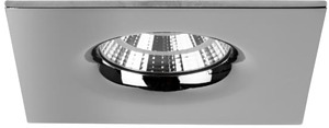 LED-Einbaudownlight, IP44, starr, chrom glänzend, eckig. Ausgeführt in kompakter Bauform für werkzeuglose Schnellmontage zum Deckeneinbau. Einbauleuchte geeignet zur direkten Montage auf normal entflammbaren Baustoffen. Wärmedämmung zulässig. Ausführung: Plug&Play, Montageart: Einbaumontage, Montageort: Deckenmontage, Material: Aluminium / Stahl / Silikonkautschuk / PMMA, Schutzart raumseitig: nach DIN EN 60529: IP44, Schutzklasse: (EN 61140) III, Leistung: 6 W, Anzahl der Leuchtmittel / Fassungen: 1 Stück, Lichtstrom: 510 lm, Farbtemperatur: 3.000 K, Lichtfarbe: weiß, Abstrahlwinkel: 36°, Verstellbarkeit: nicht verstellbar, ohne Betriebsgerät, Art der Dimmung: Abhängig vom Betriebsgerät.