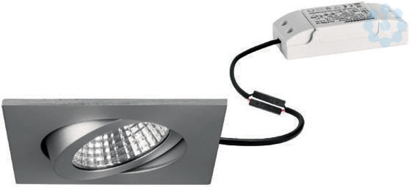 LED-Einbaustrahlerset, IP65, schaltbar, alu matt, quadratisch. Ausgeführt in kompakter Bauform für werkzeuglose Schnellmontage zum Deckeneinbau. Set inkl. Konverter für 230 V-Netzspannung, schaltbar, Maße Konverter: L 71 x B 36 x H 22 mm Montageart: Einbaumontage, Montageort: Deckenmontage, Material: Aluminium / Stahl / Silikonkautschuk / Polycarbonat, Schutzart raumseitig: nach DIN EN 60529: IP65, Schutzklasse: (EN 61140) II, Spannung: 230V AC 50Hz, Leistung: 6 W, Anzahl der Leuchtmittel / Fassungen: 1 Stück, Lichtstrom: 730 lm, Farbtemperatur: 3.000 K, Abstrahlwinkel: 38°, Verstellbarkeit: schwenkbar, Mit Betriebsgerät: Ja, Dimmbar: Nein, Art der Dimmung: schaltbar.
