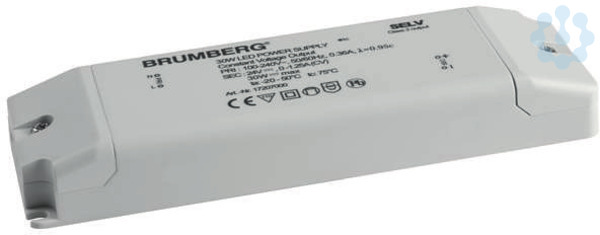 LED-Netzgerät 24 V DC, schaltbar, weiß, rechteckig. Dieses Netzgerät ist durch Sicherungseinrichtungen gegen Überspannung und Kurzschluss sowie thermische und elektrische Überlastung geschützt. Die Eingangs- und die Ausgangsklemme ist für Leitungen mit einem Querschnitt von bis zu 2,5 mm² geeignet. Material: Kunststoff, Schutzart raumseitig: nach DIN EN 60529: IP20, Schutzklasse: (EN 61140) II, Spannung: 24 V DC, Leistung: 30 W, Dimmbar: Nein, Art der Dimmung: schaltbar.