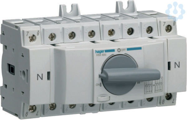 Lastumschalter, 3-polig + N, 63A, für Montage auf Hutschiene oder Montageplatte