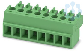 Leiterplattenstecker, Nennquerschnitt: 1,5 mm², Farbe: grün, Nennstrom: 8 A, Bemessungsspannung (III/2): 160 V, Kontaktoberfläche: Sn, Kontaktart: Buchse, Anzahl der Potenziale: 8, Anzahl der Reihen: 1, Polzahl: 8, Anzahl der Anschlüsse: 8, Artikelfamilie: MC 1,5/..-ST, Rastermaß: 3,81 mm, Anschlussart: Schraubanschluss mit Zughülse, Schraubenangriffsform: L Längsschlitz, Anschlussrichtung Leiter/Platine: 0 °, Stecksystem: COMBICON MC 1,5, Verriegelung: ohne, Befestigungsart: ohne, Verpackungsart: verpackt im Karton