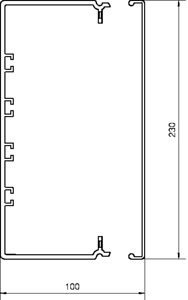 Der Leitungsführungskanal aus PVC, Farbe verkehrsweiß, Maße 100x230mm, entspricht DIN EN 50085-1. Ausgestattet mit vorgestanzter Bodenlochung (125 mm Abstand), Rückhalteklammern und Trennwandoption. Ideal für strukturierte Leitungsverlegung und Geräteeinbau. Schall- und Brandschutzmaßnahmen gemäß Vorschrift umsetzen.