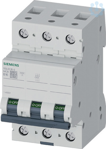 Leitungsschutzschalter 400V 6kA, 3-polig, B, 16A Leitungsschutzschalter SENTRON 5SL6 für den sicheren Kurzschluss- und Überlastschutz für Standardanwendungen im Wohn- und Zweckbau. Werkzeuglose Montage und Demontage des Geräts. Einfache Verdrahtung der Einspeisung durch die hinten liegende Sammelschiene. Die Leitungsschutzschalter 5SL sind erhältlich in 1-, 2-, 3-, 4- sowie in 1+N- und 3+N-poliger Ausführung sowie in weiteren Sondertypen. Das umfangreiche Zubehör, wie z.B. Hilfsschalter, ermöglicht die vielfältige Erweiterung der Funktionen. Einfach sicher mit den Schutzgeräten von SENTRON.