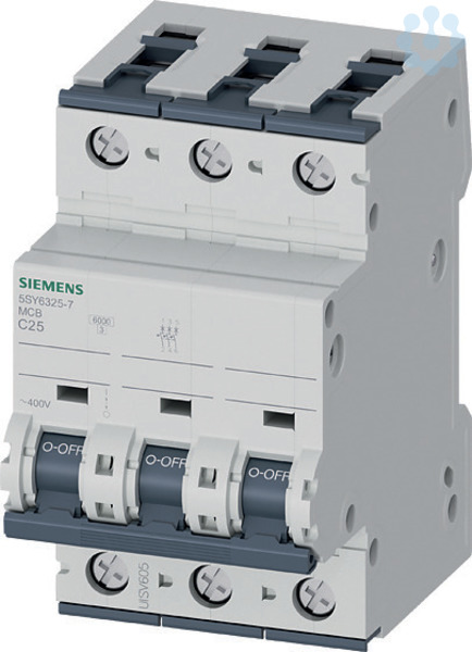 Leitungsschutzschalter 400V 6kA, 3-polig, C, 25A, T=70mm Leitungsschutzschalter SENTRON 5SY6 für den sicheren Kurzschluss- und Überlastschutz für Wohngebäude, Zweckbau und besondere Industrieanwendungen. Werkzeuglose Montage und Demontage des Geräts mit Hilfe eines Zweifachschiebers. Beliebige Kombination von Leitern und Sammelschiene durch Doppelkammerklemme. Einfache Verdrahtung der Einspeisung durch die hinten liegende Sammelschiene. Die Leitungsschutzschalter 5SY sind erhältlich in 1-, 2-, 3-, 4- sowie in 1+N- und 3+N-poliger Ausführung. Das komplette Zubehör ist einheitlich für alle Leitungsschutzschalter 5SY verwendbar. Einfach sicher mit den Schutzgeräten von SENTRON.
