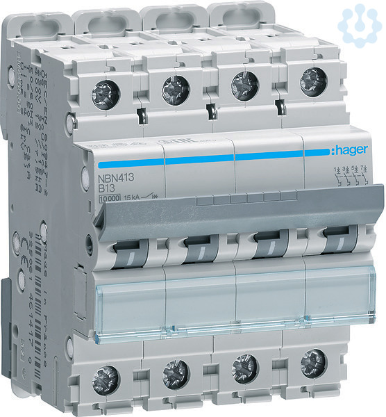 Leitungsschutzschalter 4 polig 10kA/15kA B-13A 4M.Leitungsschutzschalter nach DIN EN 60898-1 (VDE 0641-11) mit zeitverzögertem thermischen Auslöser für Überlastschutz und elektromagnetischer Auslöser für Kurzschlussschutz. Geeignet zum nachträglichen Anbau von Zusatzeinrichtungen. Beschriftungsmöglichkeit direkt am Gerät und Einzelentnahme aus dem Phasenschienenverbund durch Entriegelung der Hutschienenschnellbefestigung.