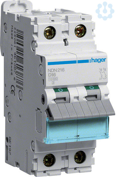 Leitungsschutzschalter 2 polig 10kA/15kA D-16A 2M.Leitungsschutzschalter nach DIN EN 60898-1 (VDE 0641-11) mit zeitverzögertem thermischen Auslöser für Überlastschutz und elektromagnetischer Auslöser für Kurzschlussschutz. Geeignet zum nachträglichen Anbau von Zusatzeinrichtungen. Beschriftungsmöglichkeit direkt am Gerät und Einzelentnahme aus dem Phasenschienenverbund durch Entriegelung der Hutschienenschnellbefestigung.