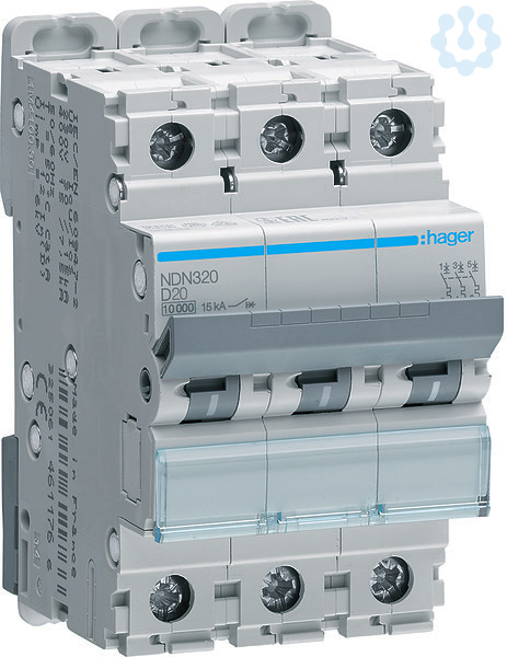 Leitungsschutzschalter 3 polig 10kA/15kA D-20A 3M.Leitungsschutzschalter nach DIN EN 60898-1 (VDE 0641-11) mit zeitverzögertem thermischen Auslöser für Überlastschutz und elektromagnetischer Auslöser für Kurzschlussschutz. Geeignet zum nachträglichen Anbau von Zusatzeinrichtungen. Beschriftungsmöglichkeit direkt am Gerät und Einzelentnahme aus dem Phasenschienenverbund durch Entriegelung der Hutschienenschnellbefestigung.