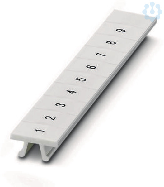 Marker für Klemmen, Streifen, weiß, beschriftet, längs bedruckt: fortlaufende Zahlen 1 ... 9, Montageart: verrasten, für Klemmenbreite: 6,2 mm, Anzahl der Einzelschilder: 9, Textfeldhöhe: 10,5 mm, Textfeldbreite: 6,15 mm