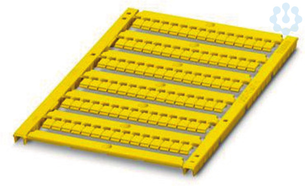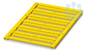 Marker für Klemmen, bestellbar: mattenweise, gelb, beschriftet nach Kundenangaben, Montageart: verrasten in flacher Schildchennut, für Klemmenbreite: 4,2 mm, Anzahl der Einzelschilder: 90, Textfeldhöhe: 4,7 mm, Textfeldbreite: 3,4 mm