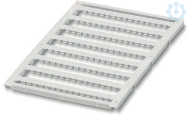 Marker für Klemmen, bestellbar: mattenweise, weiß, beschriftet nach Kundenangaben, Montageart: verrasten in flacher Schildchennut, für Klemmenbreite: 4,2 mm, Anzahl der Einzelschilder: 120, Textfeldhöhe: 5,2 mm, Textfeldbreite: 3,45 mm
