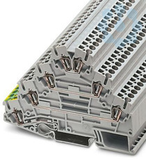 Motorenklemme, Vierstock, mit PE-Fuß, Anschlussart: Zugfederanschluss, Querschnitt: 0,08 mm² - 4 mm², AWG: 28 - 12, Breite: 5,2 mm, Farbe: grau, Montageart: NS 35/7,5, NS 35/15