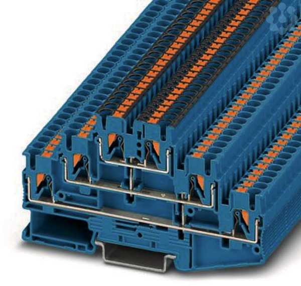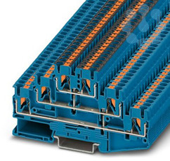 Mehrstockklemme, mit Potenzialverbinder, Nennspannung: 500 V, Nennstrom: 20 A, Anzahl der Anschlüsse: 6, Anschlussart: Push-in-Anschluss, Bemessungsquerschnitt: 2,5 mm², 1., 2. und 3. Etage, Querschnitt: 0,14 mm² - 4 mm², Montageart: NS 35/7,5, NS 35/15, Farbe: blau