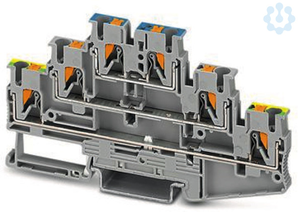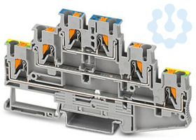 Mehrstockklemme, Nennspannung: 500 V, Nennstrom: 20 A, Anzahl der Anschlüsse: 6, Anschlussart: Push-in-Anschluss, Bemessungsquerschnitt: 2,5 mm², 1., 2. und 3. Etage, Querschnitt: 0,14 mm² - 4 mm², Montageart: NS 35/7,5, NS 35/15, Farbe: grau