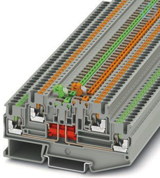 Messertrennklemme, Nennspannung: 400 V, Nennstrom: 16 A, 1. und 2. Etage, Anschlussart: Push-in-Anschluss, Bemessungsquerschnitt: 2,5 mm², Querschnitt: 0,14 mm² - 4 mm², Montage: NS 35/7,5, NS 35/15, Farbe: grau