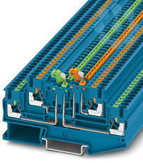 Messertrennklemme, Nennspannung: 400 V, Nennstrom: 16 A, 1. und 2. Etage, Anschlussart: Push-in-Anschluss, Bemessungsquerschnitt: 2,5 mm², Querschnitt: 0,14 mm² - 4 mm², Montage: NS 35/7,5, NS 35/15, Farbe: blau