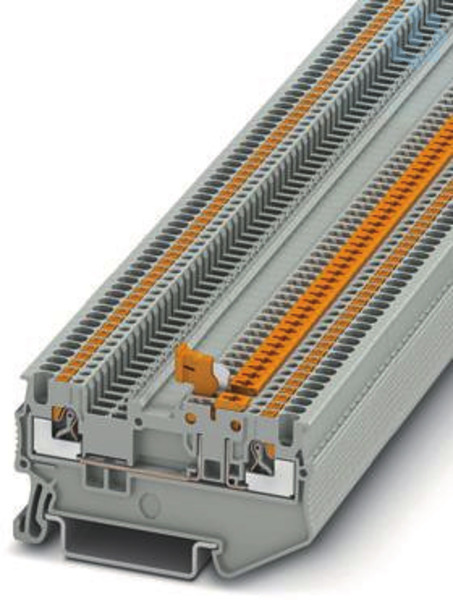 Messertrennklemme, Nennspannung: 400 V, Nennstrom: 10 A, 1. Etage, Anschlussart: Push-in-Anschluss, Bemessungsquerschnitt: 1,5 mm², Querschnitt: 0,14 mm² - 1,5 mm², Montage: NS 35/7,5, NS 35/15, Farbe: grau