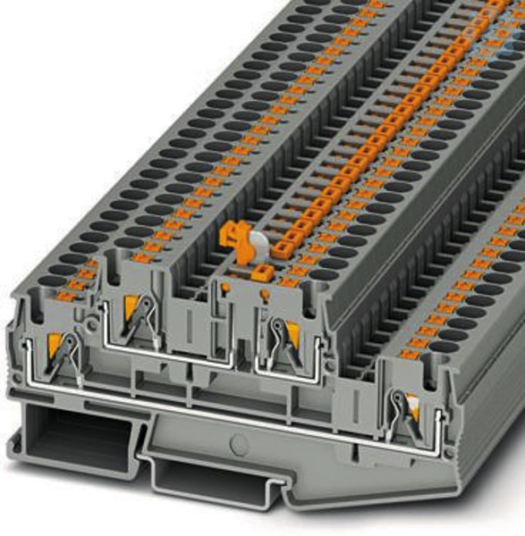 Messertrennklemme, Nennspannung: 500 V, Nennstrom: 28 A, 1. Etage, Anschlussart: Push-in-Anschluss, Bemessungsquerschnitt: 4 mm², Querschnitt: 0,2 mm² - 6 mm², 2. Etage, Anschlussart: Push-in-Anschluss, Bemessungsquerschnitt: 4 mm², Querschnitt: 0,2 mm² - 6 mm², Montage: NS 35/7,5, NS 35/15, Farbe: grau