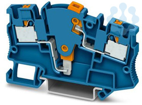 Messwandler-Trennklemme, Nennspannung: 500 V, Nennstrom: 24 A, Anzahl der Anschlüsse: 2, Anschlussart: Push-in-Anschluss, Bemessungsquerschnitt: 4 mm², 1. Etage, Querschnitt: 0,2 mm² - 6 mm², Montageart: NS 35/7,5, NS 35/15, Farbe: blau