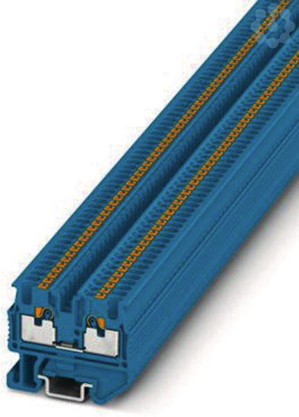 Minidurchgangsklemme, Nennspannung: 500 V, Nennstrom: 17,5 A, Anzahl der Anschlüsse: 2, Anschlussart: Push-in-Anschluss, Bemessungsquerschnitt: 1,5 mm², 1. Etage, Querschnitt: 0,14 mm² - 1,5 mm², Montageart: NS 15, Farbe: blau