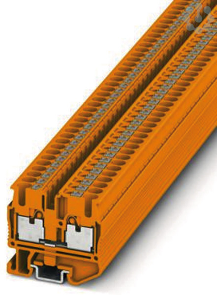 Minidurchgangsklemme, Nennspannung: 500 V, Nennstrom: 24 A, Anzahl der Anschlüsse: 2, Polzahl: 1, Anschlussart: Push-in-Anschluss, Bemessungsquerschnitt: 2,5 mm², 1. Etage, Querschnitt: 0,14 mm² - 4 mm², Montageart: NS 15, Farbe: orange