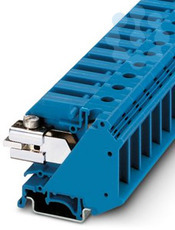 N-Trennklemme, Montagehinweis: Für die sichere Fixierung der N-Sammelschiene müssen Auflageböcke am Anfang und Ende jeder Klemmenleiste sowie bei längeren Klemmenleisten alle 20 cm gesetzt werden., zur Neutralleiter-Trennung, Nennspannung: 400 V, Nennstrom: 110 A, Spezial- und Mischanschluss, 1. Etage Anschluss rechts, Bemessungsquerschnitt: 35 mm², Querschnitt: 0,75 mm² - 35 mm², Montageart: NS 35/7,5, NS 35/15, Farbe: blau