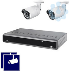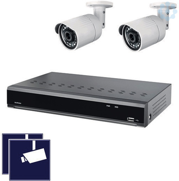 NVR-Überwachungsset bestehend aus Netzwerk-Videorecorder NVR504-POE mit PoE-Versorgung für bis zu 4 Netzwerkkameras über 4 PoE-Ports (Gesamtleistung PoE: max. 45W), Echtzeitaufnahme in bis zu 8MP, Kapazität max. 50Mbps, inkl. 2 TB Festplatte und Netzwerk-Software sowie zwei 2-Megapixel-Netzwerkkameras NWB6230F (IP-Kamera) für innen oder außen (IP66) zur Wand- und Deckenmontage, mit 1/2,9 Zoll Sony CMOS Sensor, Auflösung 1920 x 1080 Pixel (Full HD) bei bis zu 25 Bps, mind. Beleuchtung 0,06 Lux (F1.4 Farbe) / 0,001 Lux (s/w) / 0 Lux (mit IR) mit 3,6mm Fix-Objektiv (horizontaler Erfassungswinkel 82°) und Infrarot-Ausleuchtung (850nm) bis 20m. Inkl. zwei Warnaufklebern >Videoüberwachung< (Piktogramm). Zugriff über App, Client Software oder Browser. Fernzugriff (Internetverbindung erforderlich) über P2P (ohne feste öffentliche IP-Adresse) oder DynDNS / Portweiterleitung. App für iOS (App Store) und Android (Play Store, Google-Version) kostenlos erhältlich (nicht Teil des Produkts, keine Zusage eines Servicelevels). Passendes Zubehör: Anschlusskasten für Kameras AK50, AK208.