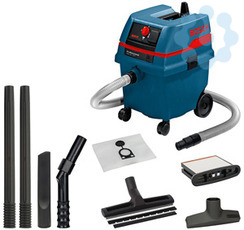 Nass-/Trockensauger GAS 25 L SFC, Der GAS 25 L SFC Professional ist Boschs kompakter und mobiler kabelgebundener Staubsauger der Staubklasse L, ideal für Nass- und Trockenanwendungen. Sein semi-automatisches Filterreinigungssystem (SFC) macht die Wartung unkompliziert. Für seinen zuverlässigen Anwenderschutz gemäß EU-Norm wurde er mit dem Saugerzertifikat der Staubklasse L ausgezeichnet. Durch sein extrem kompaktes Design lässt er sich einfach transportieren und verladen. Dieser mobile Sauger eignet sich zum Nass- und Trockensaugen. Grobschmutzdüse, 35 mm Ø (2 607 000 170). Fugendüse, 35 mm Ø (2 607 000 165). Schlauch 3 m, Ø 35 mm (2 609 390 392). Bodendüsen-Set, 35 mm Ø (1 609 390 478). Papierbeutel (2 605 411 167). 1 x Polyesterfilter (2 607 432 015). Luftreguliergriff (2 607 000 164). 2 x Absaugrohr, Länge 0,5 m, Ø 35 mm (2 607 000 162)