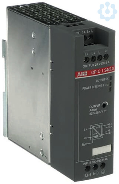 Primär-getaktetes Schaltnetzteil mit einem großen Eingangsspannungsbereich von 85-264 V AC und 90-300 V DC, die Bemessungseingangsspannung beträgt 110-240V AC. Die Bemessungsausgangsleistung beträgt 120 W, der Bemessungsausgangsstrom 5 A bei einer Ausgangsspannung von 24 V DC. Die Ausgangsspannung kann im Bereich von 22,5 V bis 28,5 V DC eingestellt werden. Das Netzteil besitzt eine U/I-Ausgangskennlinie mit einer Leistungsreserve von bis zu 50%. Die Parallelschaltung der Ausgänge zur Leistungserhöhung oder Redundanz ist möglich. Redundanzeinheiten und Puffermodule sind als Zubehör verfügbar.