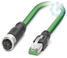 Netzwerkkabel, PROFINET CAT5 (100 MBit/s), EtherCAT® CAT5 (100 MBit/s), 4-polig, PVC/PVC, grün RAL 6018, geschirmt (Advanced Shielding Technology), Buchse gerade M12, Kodierung: D / IP67, auf Stecker gerade RJ45 / IP20, Kabellänge: 1 m
