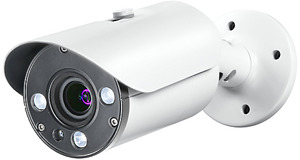 4 Megapixel Netzwerkkamera mit Motorzoom (4MP IP-Kamera) für innen oder außen (IP66) zur Wand- und Deckenmontage, mit 1/3 Zoll CMOS Sensor, 4MP Auflösung 2592 x 1520 bei 20 Bps oder 2560 x 1440 bei 25 Bps, mind. Beleuchtung 0,5 Lux (F1.2, Farbe) / 0,2 Lux (s/w) / 0 Lux (mit IR). Mit 6-22mm ferneinstellbarem Motorzoom-Objektiv (Telezoom, horizontaler Erfassungswinkel 38-16°) mit Auto-Fokus und Tag/Nacht-IR-Filter. Infrarot-Ausleuchtung (850nm) bis 50m. Software-WDR. Lokale Bildspeicherung auf microSD-Karte (max. 128GB, nicht im Lieferumfang) möglich. Kompatibilitätsstandard: ONVIF 17.06. Browserzugriff z.B. über Internet Explorer. App für iOS (App Store) und Android (Play Store, Google-Version) kostenlos erhältlich (nicht Teil des Produkts, keine Zusage eines Servicelevels). Fernzugriff per App mit P2P-Service ohne Router-Konfiguration möglich (DynDNS, Port, Internetverbindung erforderlich). Intelligente Funktionen wie Liniendetektion und Schnappschussbilder (Bewegung) per E-Mail. Betriebsspannung: PoE 802.3af (Leistungsaufnahme max. 9W) oder 12V DC (Stromverbrauch max. 750mA) über ca. 40cm Kabelpeitsche. Inkl. Sonnenschutzblende und Halterung mit innenliegender Kabelführung. Farbe: weiß ähnlich RAL 9003. Gehäuseabmessungen: D 77 x 127mm. Passendes Zubehör: Anschlusskasten AK208, Powerline-Adapter mit PoE NWPL01-POE.