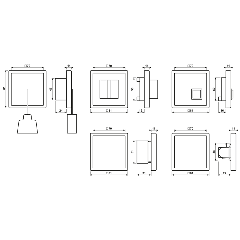 Die Komponenten des JUNG Notrufsystems werden mit Rahmen aus den Serien AS / A, CD oder LS ergänzt, so dass ein einheitliches Design im gesamten Gebäude möglich ist. Im kompletten Notrufset sind die Rahmen bereits enthalten.