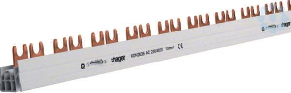 Phasenschiene 2 polig mit Gabelanschluss 10mm² 63A 57 Module
