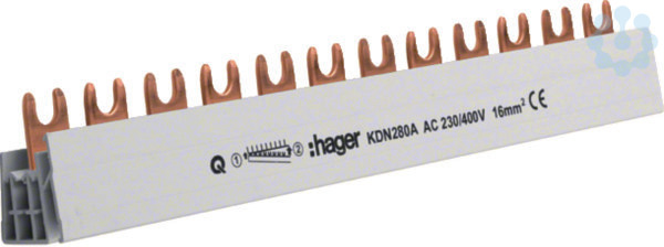 Phasenschiene 2 polig mit Gabelanschluss 16mm² 80A 12 Module