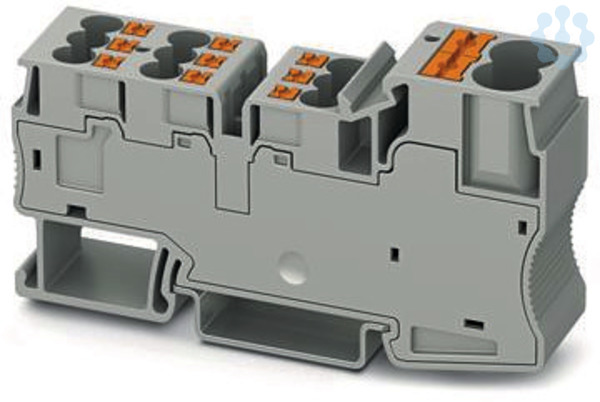 Potenzialsammelklemme, Nennspannung: 1000 V, Nennstrom: 57 A, Sammelanschluss, Anschlussart: Push-in-Anschluss, Bemessungsquerschnitt: 10 mm², Querschnitt: 0,5 mm² - 16 mm², Abgriff, Anschlussart: Push-in-Anschluss, Bemessungsquerschnitt: 4 mm², Querschnitt: 0,5 mm² - 6 mm², Montage: NS 35/7,5, NS 35/15, Farbe: grau