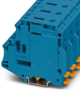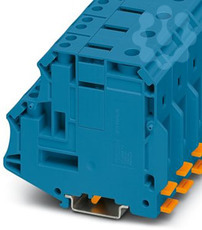Potenzialsammelklemme, Nennspannung: 1500 V, Nennstrom: 192 A, Anzahl der Anschlüsse: 5, Polzahl: 1, Anschlussart: Schraubanschluss, Querschnitt: 16 mm² - 95 mm², Schraubanschluss, Querschnitt: 1,5 mm² - 16 mm², Montageart: NS 35/7,5, NS 35/15, NS 35/15-2,3, NS 32, Farbe: blau