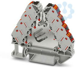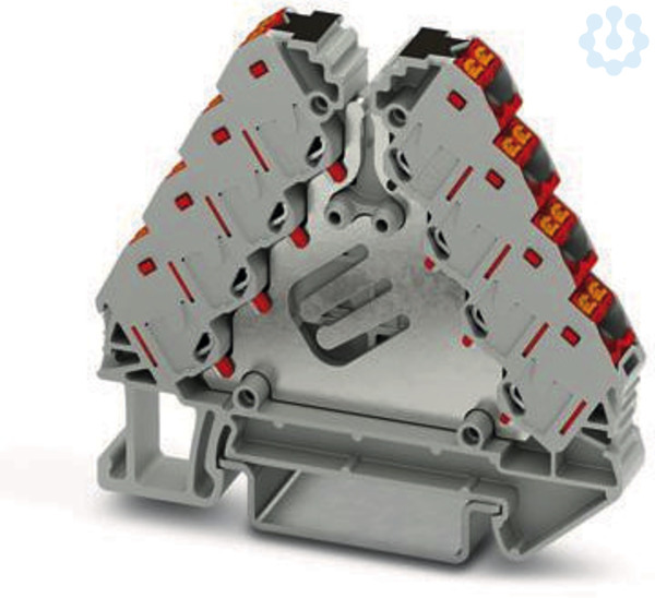 Potenzialverteiler, Nennspannung: 250 V, Nennstrom: 17,5 A, Anschlussart: Push-in-Anschluss, 1., 2., 3. und 4. Etage, Bemessungsquerschnitt: 1,5 mm², Querschnitt: 0,14 mm² - 2,5 mm², Montage: NS 35/7,5, NS 35/15, Farbe: grau, Farbe Anschlusselemente: rot