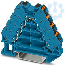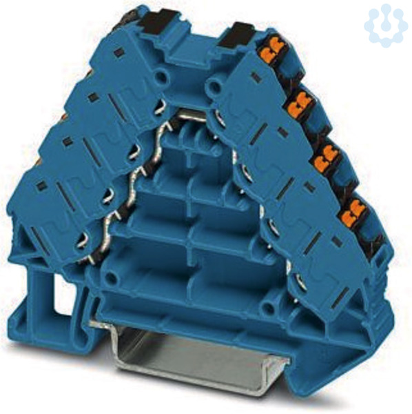 Potenzialverteiler, Nennspannung: 250 V, Nennstrom: 17,5 A, Anschlussart: Push-in-Anschluss, 1., 2., 3. und 4. Etage, Bemessungsquerschnitt: 1,5 mm², Querschnitt: 0,14 mm² - 2,5 mm², Montage: NS 35/7,5, NS 35/15, Farbe: blau, Farbe Anschlusselemente: schwarz