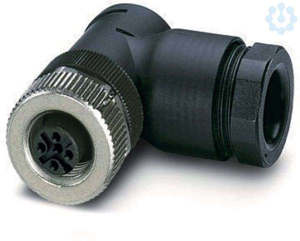 Power-Steckverbinder, 4-polig, Buchse gewinkelt M12, Kodierung: A, Schraubanschluss, Rändelmaterial: Zinkdruckguss, vernickelt, Kabelverschraubung Pg11, Leitungsaußendurchmesser 8 mm ... 10 mm