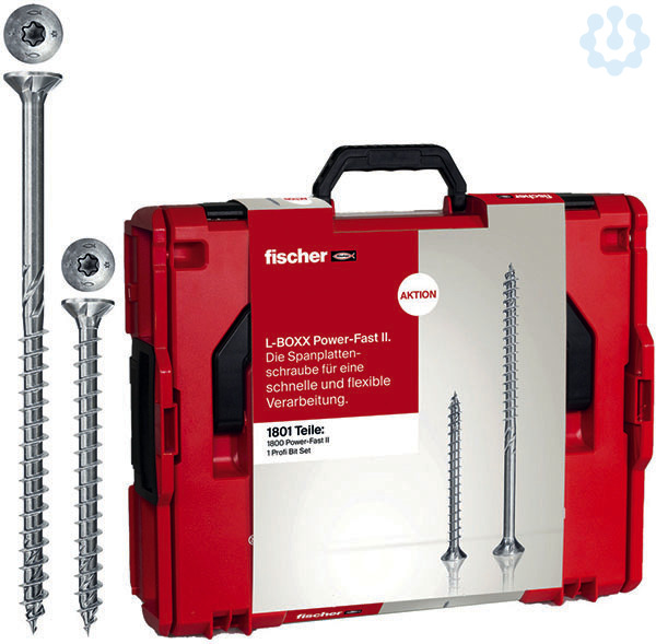 Sichern Sie sich jetzt die praktische L-BOXX - gefüllt mit PowerFast II Schrauben mit Teilgewinde in den gängigen Abmessungen und einem ProfiBit Set. Die fischer PowerFast II ist eine galvanisch verzinkte, blau passivierte Schraube mit Voll- oder Teilgewinde und Innenstern-Aufnahme. Der Senkkopf ermöglicht die oberflächenbündige Montage im Holz. Die Ausführung mit Teilgewinde ermöglicht das feste Aneinanderziehen von Holzelementen. Die Schraube eignet sich für Befestigungen von tragenden Bauteilen in beschichtetem Holz, Hartholz, Weichholz und Holzverbindungen.