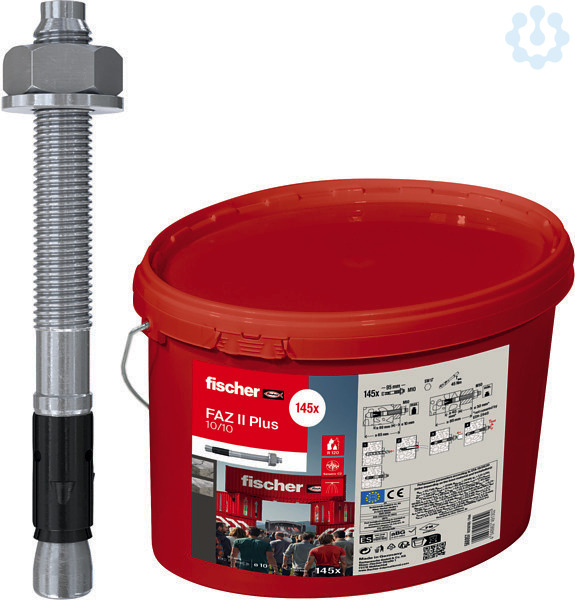 Der fischer Bolzenanker FAZ II Plus ist der Stahlanker für höchste Ansprüche mit hohen Quertragfähigkeiten und breitem Anwendungsfeld. Mit dem Stahlanker werden schwere Lasten in gerissenem Beton befestigt. Der FAZ II Plus kann durch Wegfall der Bohrlochreinigung einfacher und schneller gesetzt werden (M8-M24). Der bewährte Spreizclip leitet die Lasten sicher in den Beton ein und ermöglicht eine sofort belastbare, hohe Tragfähigkeit. Ideal ist der Stahlanker beispielsweise für die Verankerung von Geländern, Kabeltrassen und Konsolen.