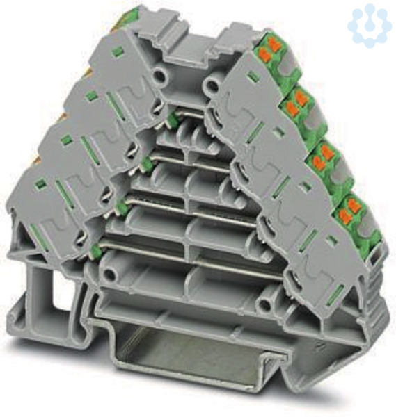 Rangierverteiler, Nennspannung: 250 V, Nennstrom: 10 A, Anschlussart: Push-in-Anschluss, 1., 2., 3. und 4. Etage, Bemessungsquerschnitt: 1,5 mm², Querschnitt: 0,14 mm² - 2,5 mm², Montage: NS 35/7,5, NS 35/15, Farbe: grau, Farbe Anschlusselemente: grün