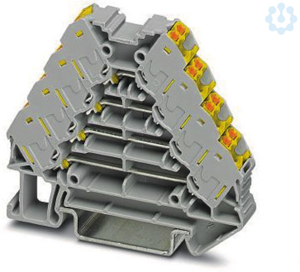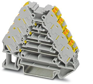 Rangierverteiler, Nennspannung: 250 V, Nennstrom: 10 A, Anschlussart: Push-in-Anschluss, 1., 2., 3. und 4. Etage, Bemessungsquerschnitt: 1,5 mm², Querschnitt: 0,14 mm² - 2,5 mm², Montage: NS 35/7,5, NS 35/15, Farbe: grau, Farbe Anschlusselemente: gelb