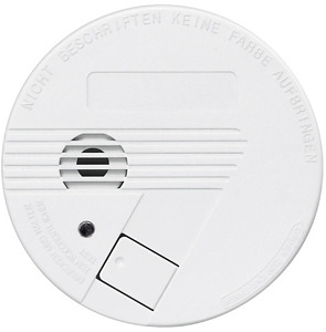 Rauchwarnmelder, foto-elektronisch, 9 Volt Batteriebetrieb. Mit lautem 85 dB(A) Warnton, LED-Statusanzeige, Prüftaste und akustischer Batteriewarnung. Geprüft nach EN 14604, entspricht den Anforderungen der DIN 14676. Inkl. austauschbarer DURACELL-Alkaline-Batterie. Farbe: weiß. Abmessungen: D 108 x 32mm.