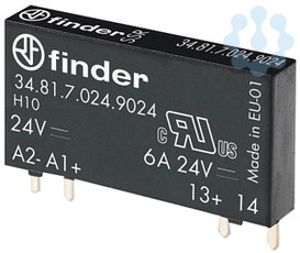 Schmales Steck-/Printrelais, elektronisch, Eingangsspannung: 24 V DC, Eingangsstrom: 7 mA, Ausgangsspannung 1,5-33 V DC max. Ausgangsdauerstrom: 6 A Relaisschutzart: RT III